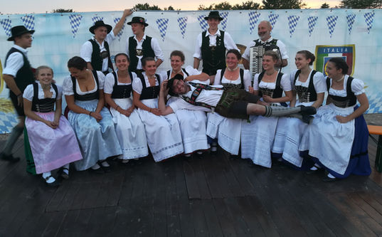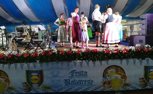 Unter großen Applaus konnte der Lidl Italien Geschäftsführer mit nur drei gekonnten Schlägen, das erste Faß Festbier, anzapfen und damit das „Festa Bavarese“ eröffnen. Vor allem die anwesenden bayerischen Urlaubsgäste, hatten eine Rechte Gaudi im Bierzelt am Gardasee. Es war ja auch fast wie Daheim bei Hendl, Schweinsbraten und vielen weiteren bayerischen Spezialitäten. In den folgenden Tagen wurde das Programm abwechselnd von der Tanzlmusi „Saienblech“, aus dem Rosenheimer Raum, den Niklasreutern Goaslschnoizern, dem Musikverein Eichenau sowie unserer Gaugruppe gestaltet. Während den Auftritten war aber immer noch genügend Zeit um sich mit einem Eis oder einer kühlen Maß abzukühlen, was bei 36 Grad im Schatten auch nötig war. Die längeren Pausen zwischen den Auftritten, wurden dazu genutzt, das Trachtengwand gegen Bikini und Badehose zu tauschen und sich im Gardasee zu erfrischen. Als sich am Sonntagabend das Fest langsam dem Ende neigte waren wir uns sicher „Schod dass scho wieda aus is!“, denn in den vergangenen fünf Tagen konnten wieder einige gute Freundschaften geknüpft werden, die mit Sicherheit auch in unserer bayerischen Heimat weitergeführt werden.